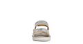 Sandalo ragazzina in ecopelle argento modello a due fasce con velcro regolabile e applicazione stella glitter.
