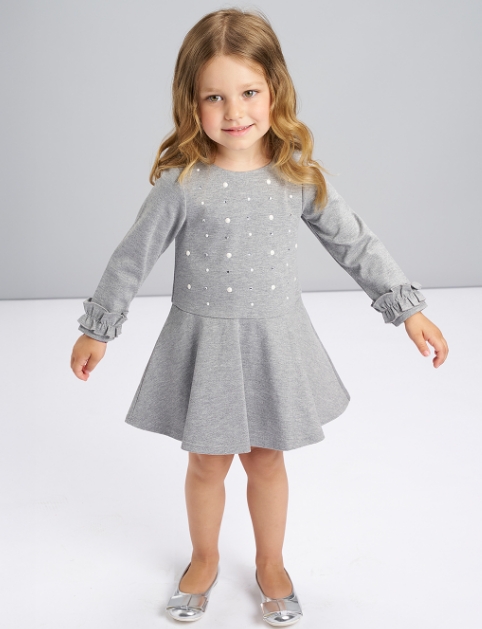 Abito bimba in felpa stretch beige con orsetti peluche marroni.